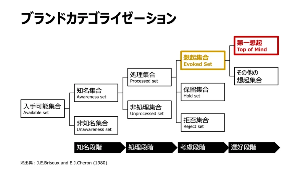 この段階ごとの構造を把握することが、想起を起点としたマーケティング施策を設計するうえで不可欠になります。