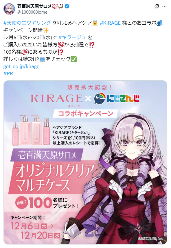ブランドと高相性のIP選定から購買導線設計までを一貫支援。迅速に成果へ導いたファンダムマーケティング『KIRAGE』 ×『壱百満天原サロメ』