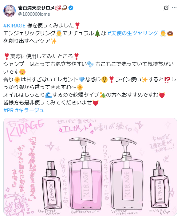 PR投稿では、単なる商品紹介ではなく、壱百満天原サロメさんのファンダムに好まれる「手書きイラスト」を用いました。限られた予算の中で効果を最大化する施策で、投稿のエンゲージメントを高めることに成功しました。